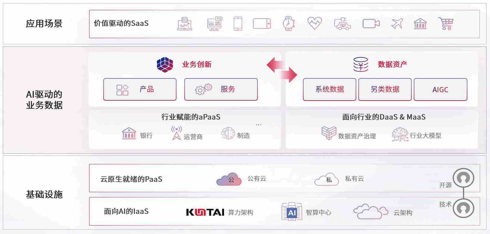 数字时代,,围绕企业数字化转型的关键要素,,,,RB88数码开创性的提出数云融合战略和技术体系框架,,着力在云原生、、、、数字原生、、、AI原生和信创产业上架构产品和服务能力,,,,为处在不同数字化转型阶段的快消零售、、、、汽车、、、、金融、、、医疗、、政企、、、教育、、、、运营商等行业客户提供泛在的敏捷IT能力和融合的数据驱动能力,,构建跨界融合创新的数字业务场景和新业务模式,,,,助力企业级客户建立面向未来的核心能力和竞争优势,,,,全面推动社会的数字化、、、智能化转型升级。。