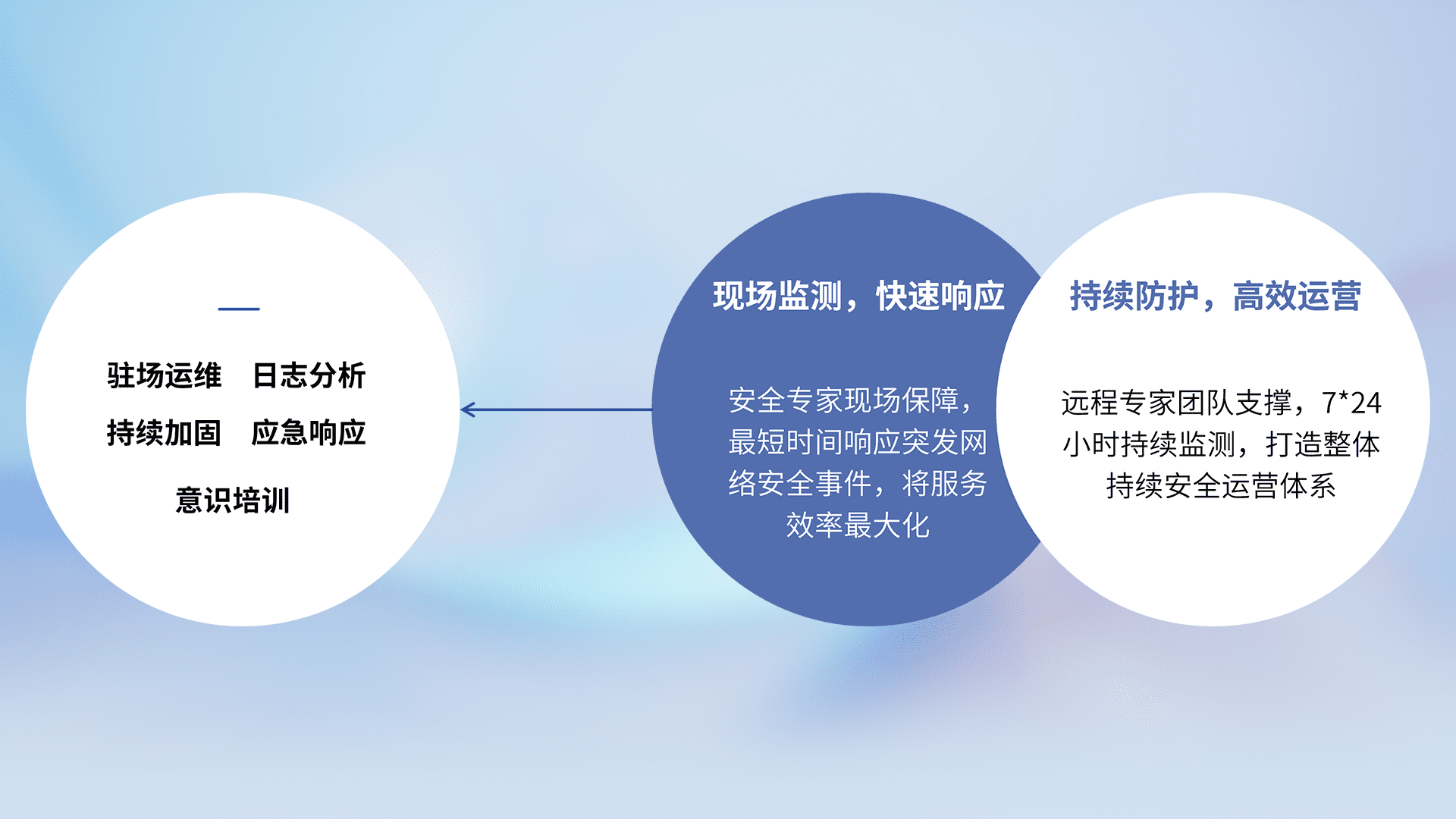 针对客户行业特性,,提供专属的一站式安全管理服务,,,帮助客户全面感知网络空间威胁,,,,通过安全专家的线上、、线下防护支持,,实现风险闭环,,,,将安全保障常态化,,,为客户打造常态化安全运维运营服务。。
